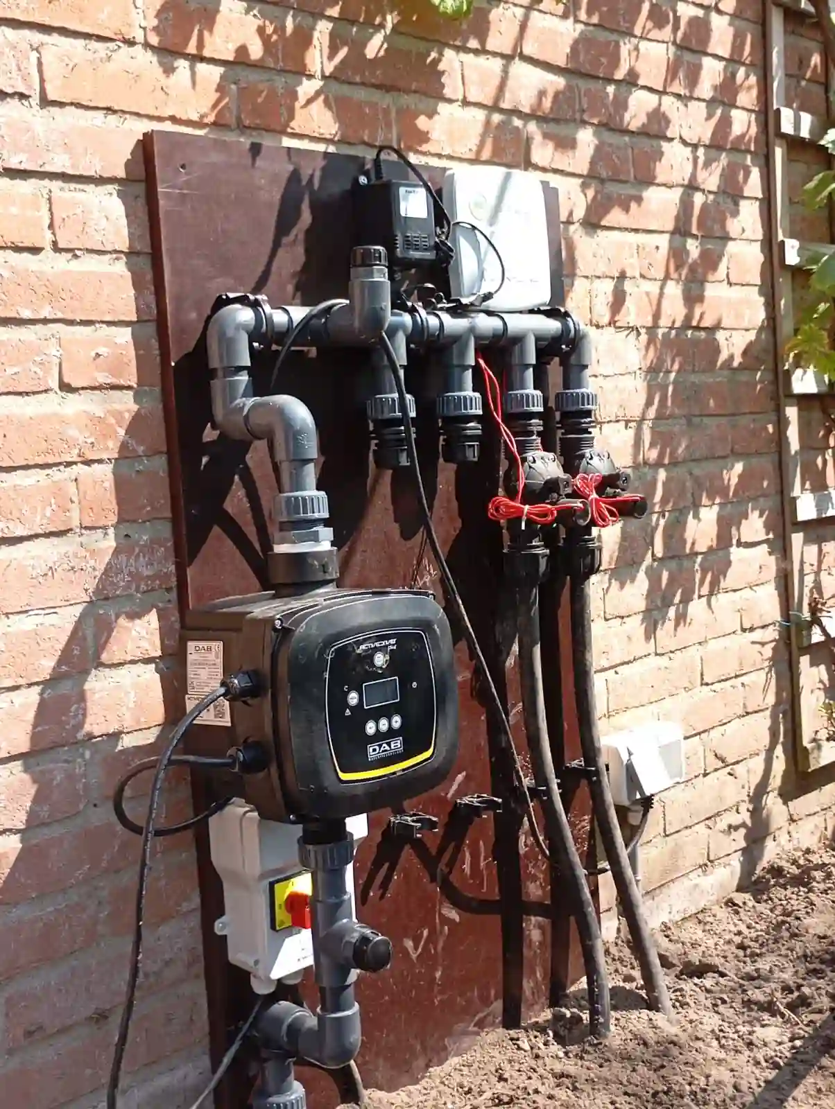 In Leusden hebben we een tuinberegeningsinstallatie aangelegd. We begonnen met het boren van een bron en hebben een bronpompinstallatie met frequentiebesturing geplaatst. Deze zorgt ervoor dat de waterdruk constant blijft, ongeacht hoeveel sproeiers er tegelijkertijd werken. Dit voorkomt dat de druk te hoog of te laag wordt en zorgt voor een efficiënte werking van het systeem.