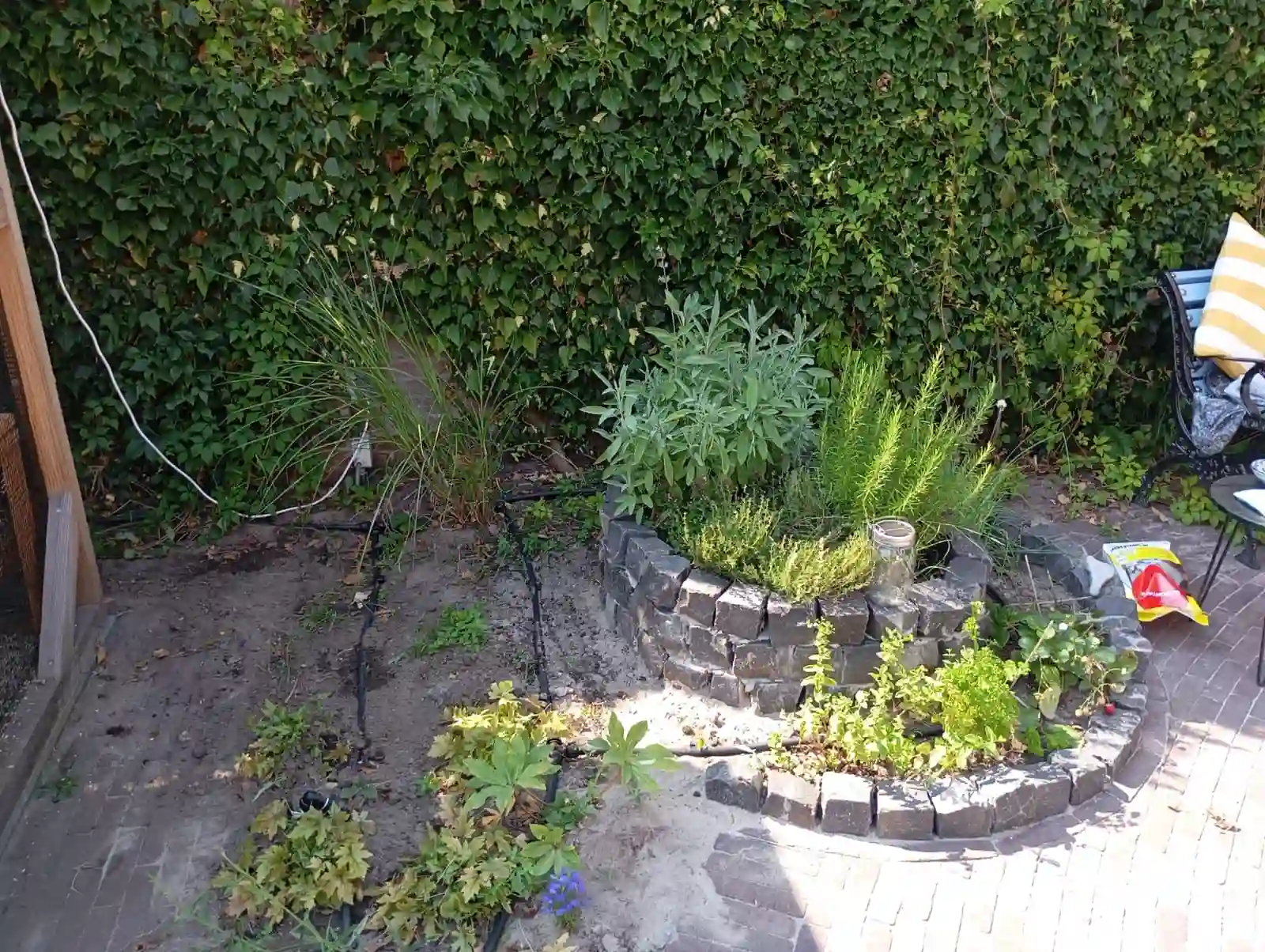 Bij deze tuin in Leusden waren meerdere borders aanwezig. Deze bordes konden in principe worden besproeid met de pop-up sproeiers van het gazon, maar omdat druppelslangen eigenlijk beter zijn voor de beplanting hebben wij deze geplaatst.